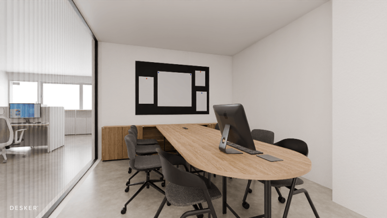 床材、壁紙、窓の位置を考慮して、オフィス家具をまとめて慎重に購入しました。