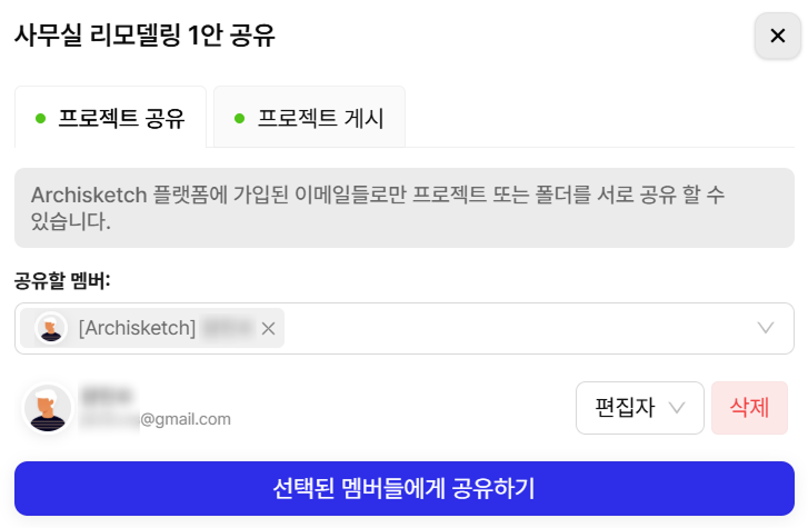 メンバーのメールアドレスを入力し、「選択したメンバーに共有」をクリック。